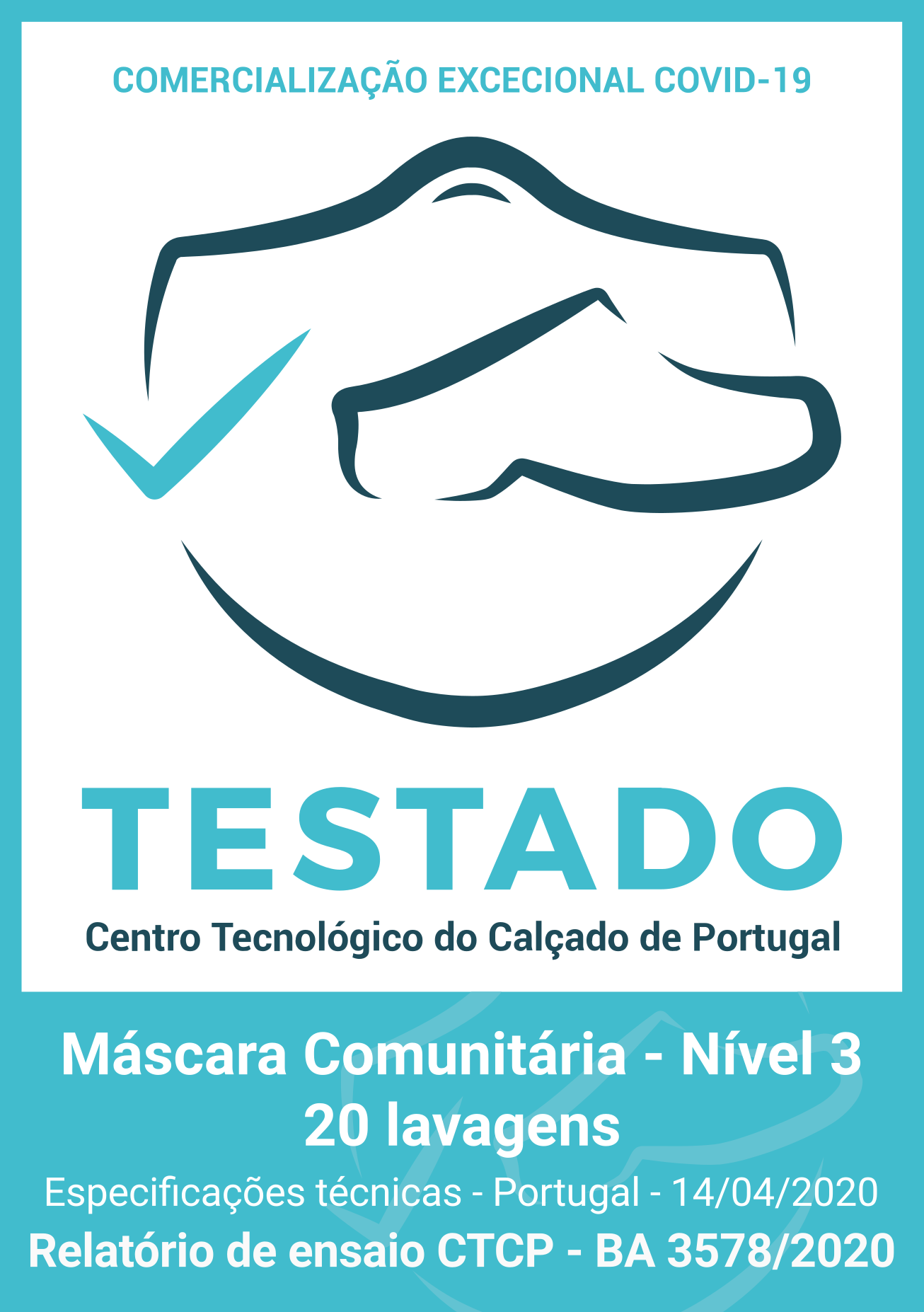 - Número máximo de ciclos de lavagem em que se garante o desempenho da máscara: 20.
